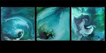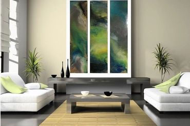 acrylic on wood panel 12 ft x 4 ft triptych " symphony bluebird"
